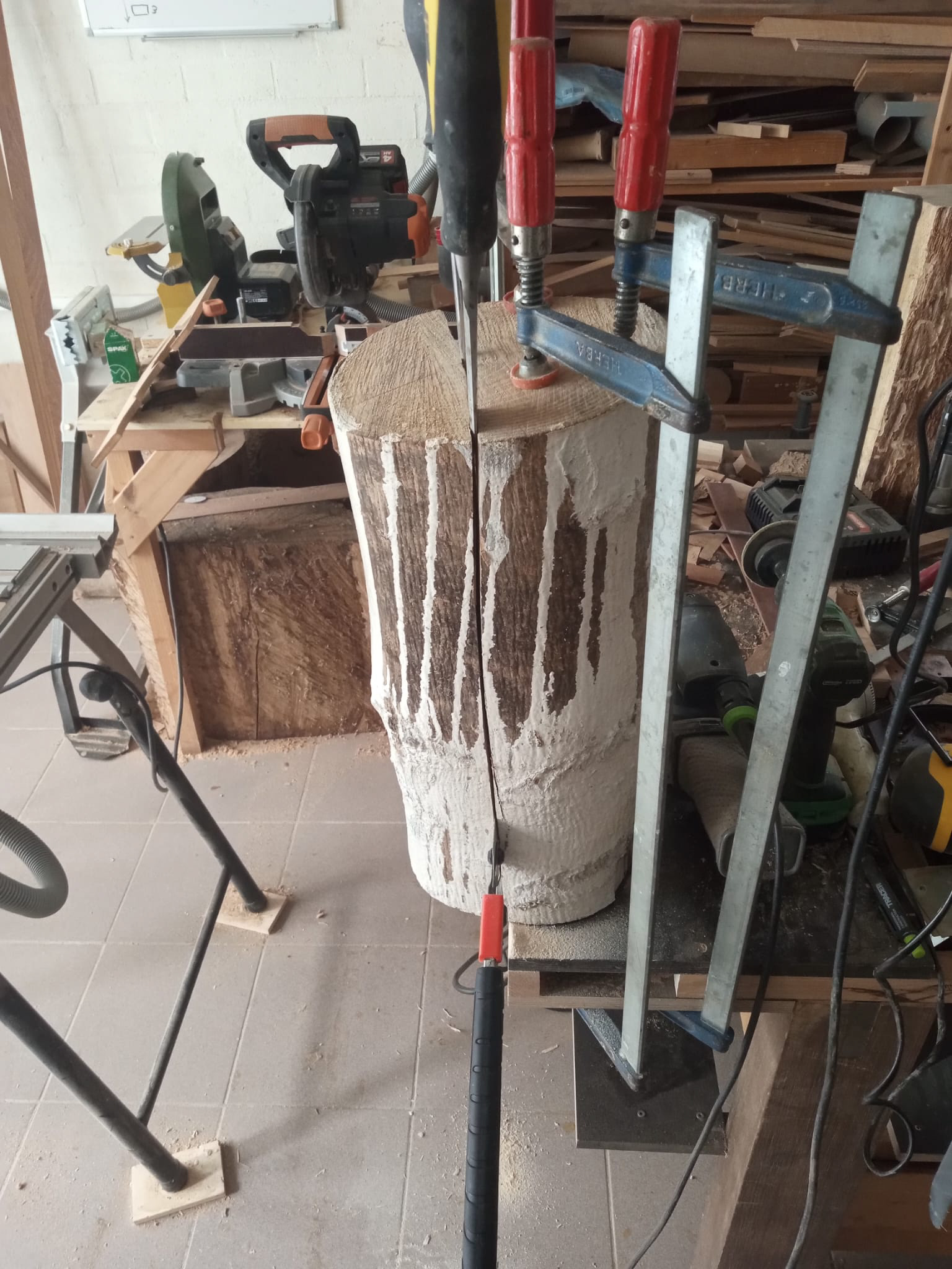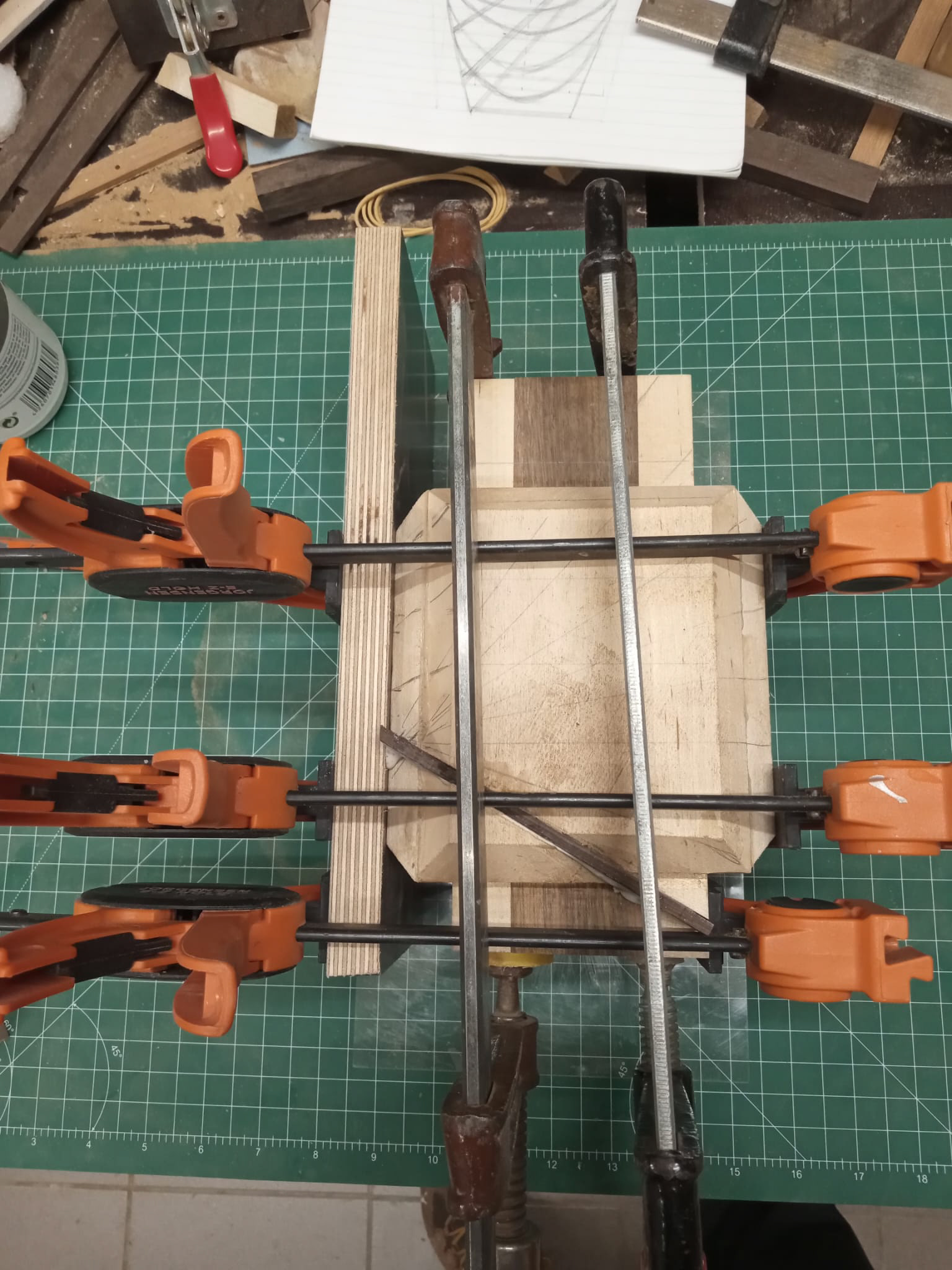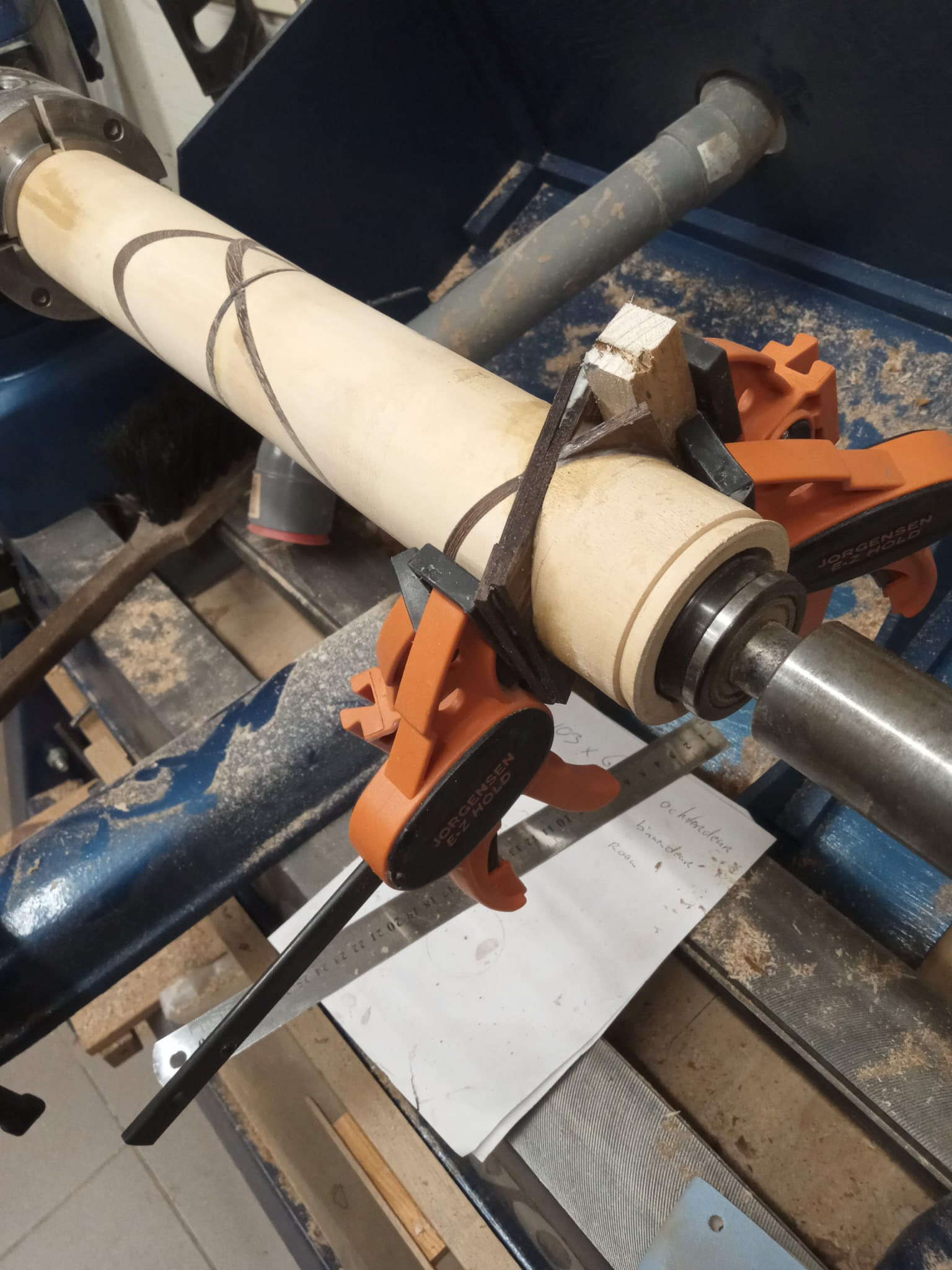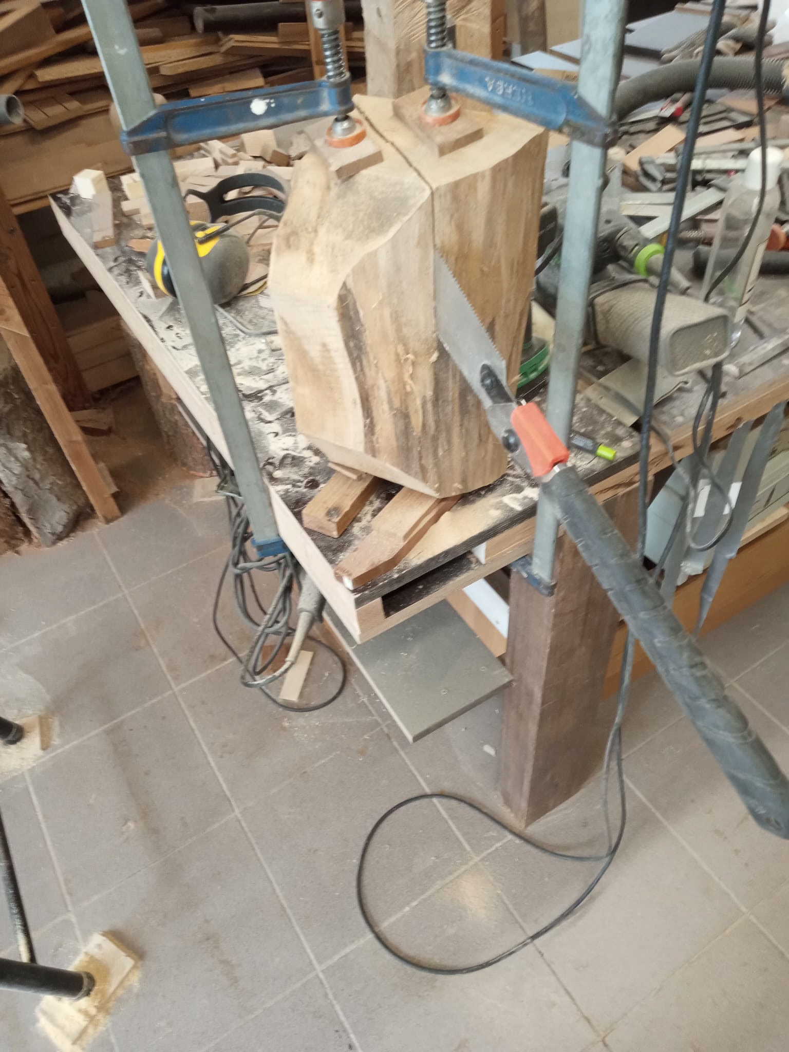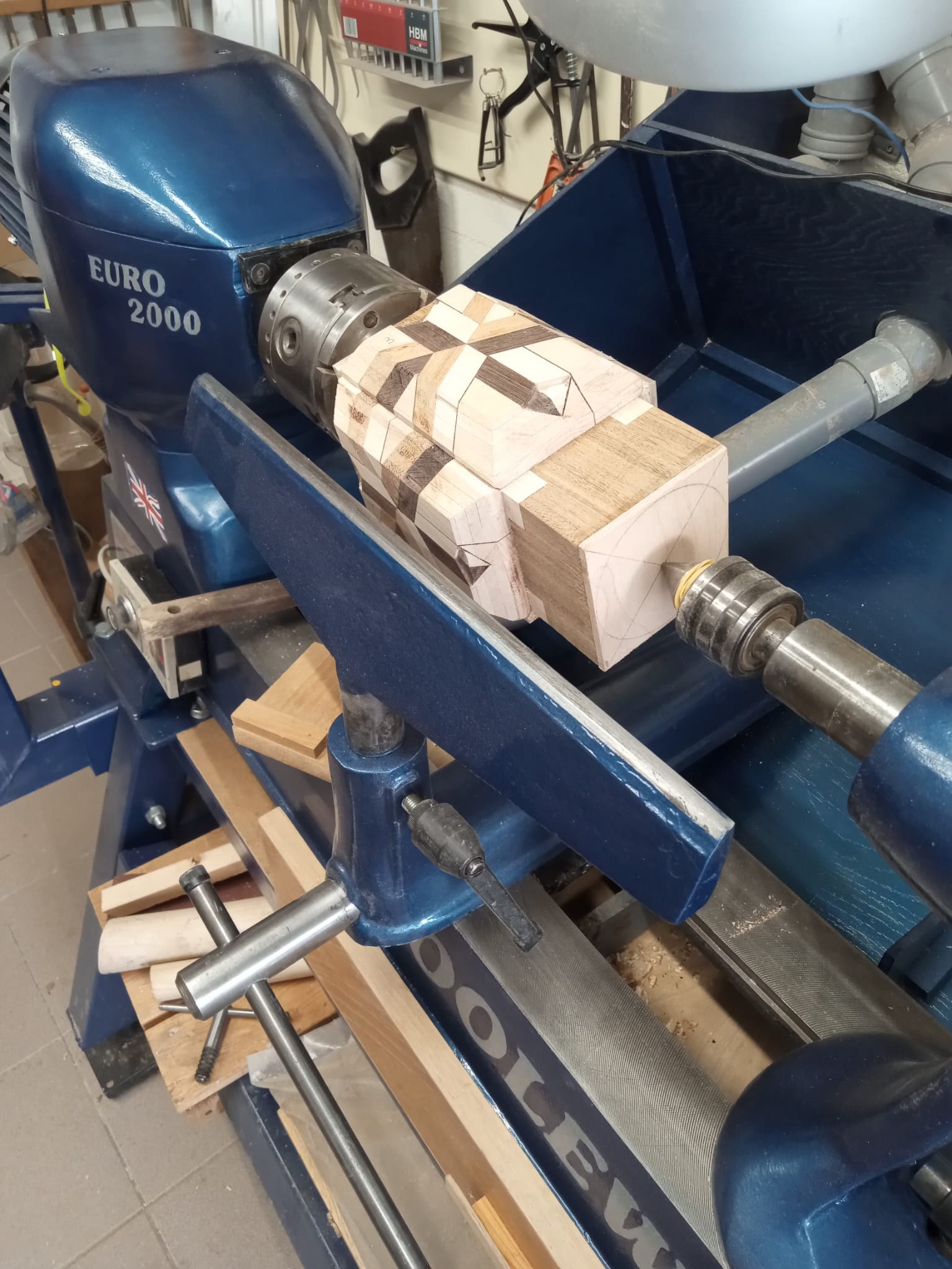 My latest work was inspired by a table I made using pieces of an old wooden staircase paired with left-over pieces of wooden flooring. The staircase pieces were not thick enough, but the wooden flooring was - combining the two was the solution and led to my first geometric design. My thoughts after finished the table: "this table deserves a matching vase". And so it began.